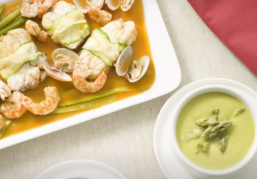 - Crema de espárragos y calabacín.