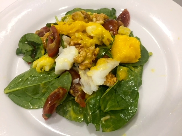 Ensalada de bacalao con vinagreta de mango