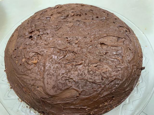 Vierta los chocolates sobre el bizcocho alternando una cucharada de cada uno y, con el reverso de la cuchara, muévalos para que se mezclen. Deje enfriar dentro del frigorífico durante un mínimo de 1 hora, corte en porciones y sirva.