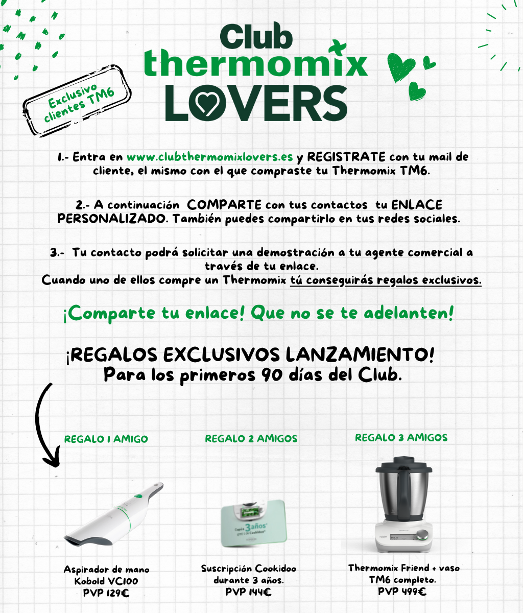 Estamos de estreno y es que por fin tenemos el club que nos merecemos, el CLUB THERMOMIX LOVERS exclusivo para clientes TM6. Con él podrás conseguir regalos especiales. Simplemente: