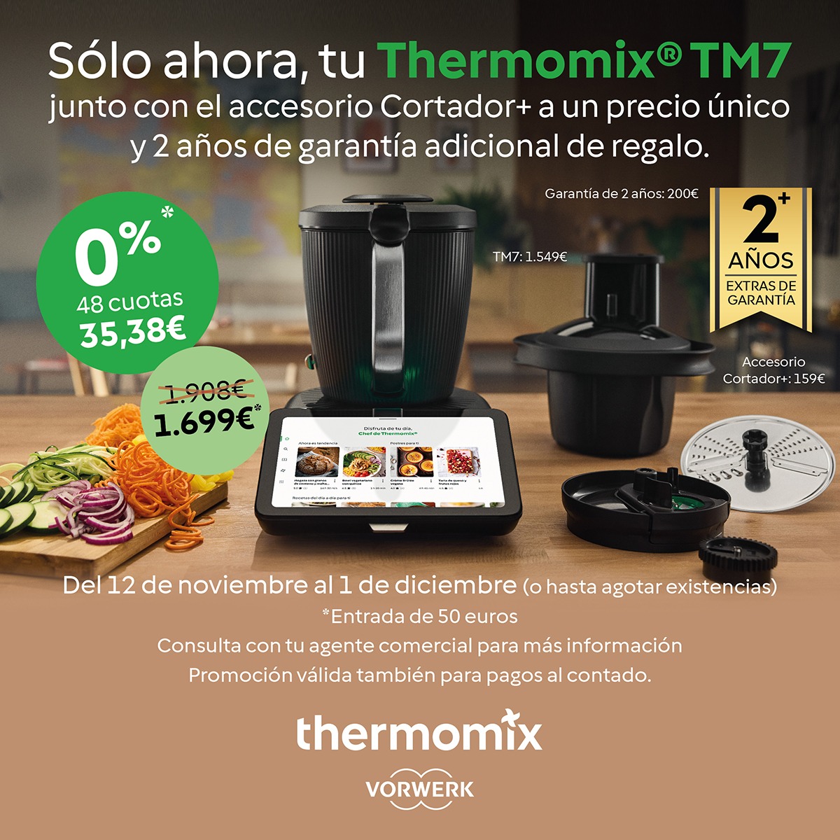 La mejor promo del Thermomix TM7: pack con Cortador+ y 2 años de garantía extra. Disponible solo por tiempo limitado. Descubre el precio especial.