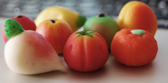 (para 250 g de mazapán: unas 25 frutitas)
