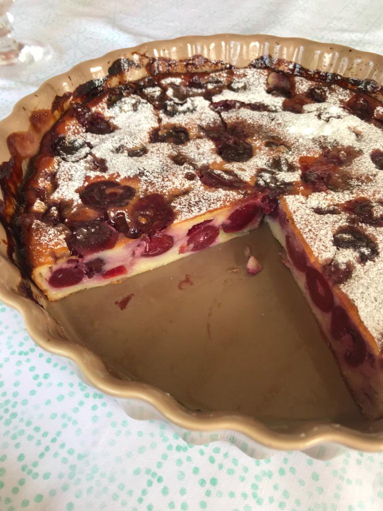 Se elabora horneando en un molde, cerezas bañadas en una masa líquida parecida a la de los crêpes.