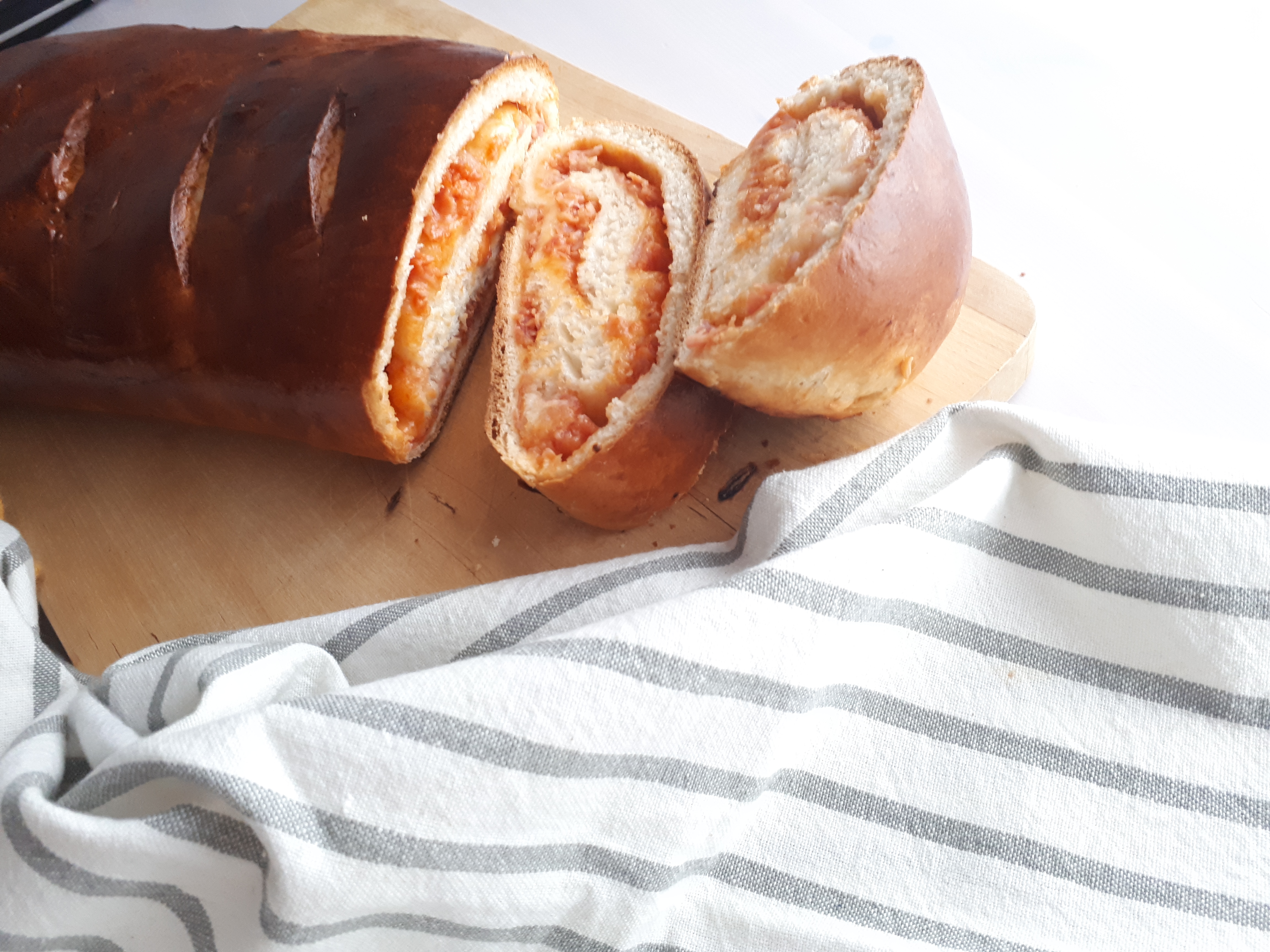 Se trata de un pan dulce y suave que puedes rellenarlo con lo que más te apetezca. En esta ocasión, lleva dentro tomate, jamón y queso. Pero échale imaginación y rellena con lo que más te guste, ya sea dulce o salado el resultado te va a encantar!