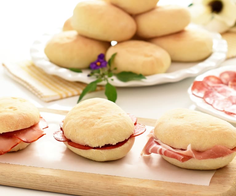 7.- Espolvorea los molletes con un poco de harina, baja la temperatura del horno a 180°C y hornea cada bandeja durante 15 minutos (los molletes no deben dorarse). Retira del horno y deja enfriar sobre una rejilla (aprox. 30 minutos). Puedes consumirlos inmediatamente o congelarlos.