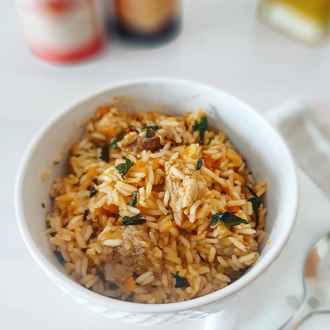 Este sabroso guiso de arroz, verduras, carne y especias es mi recomendación para ti, para esos días en que tienes poco tiempo para cocinar.