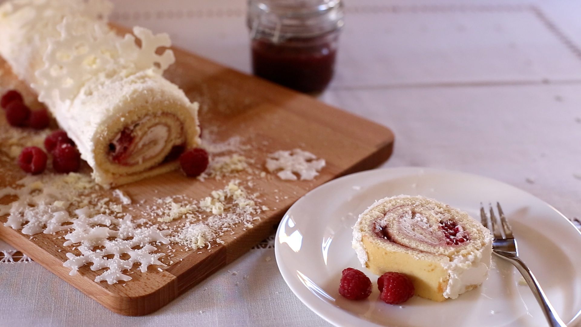 4. Hornea durante 10 min (180º). Desmolda el bizcocho en caliente sobre un paño de cocina limpio. Retira el papel de hornear. Enróllalo junto con el paño por la parte más estrecha y después envuelve todo con papel de aluminio. Deja enfriar en el frigorífico.