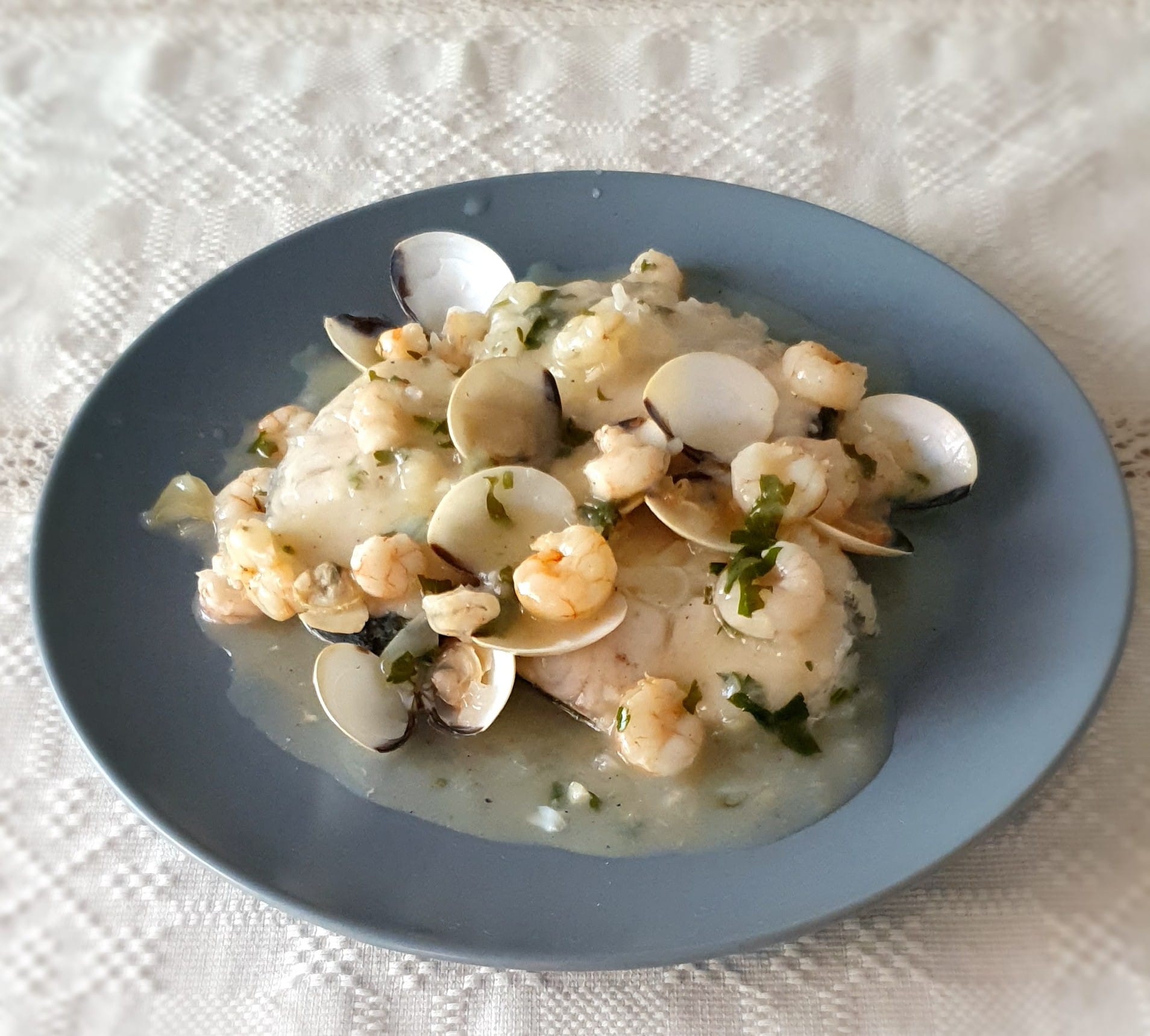 MERLUZA EN SALSA VERDE CON GAMBAS Y ALMEJAS