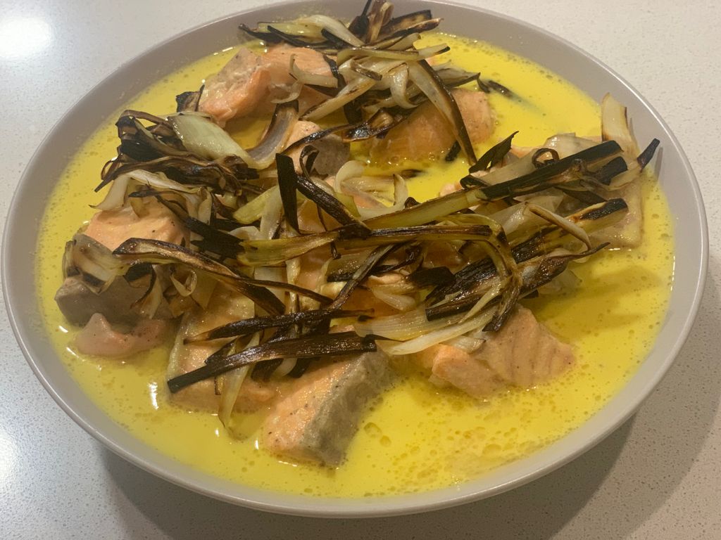 600 g de lomo de salmón fresco sin piel (en tacos y salpimentado)