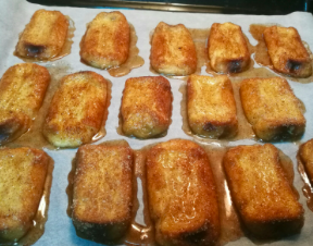 10º- Introducimos la bandeja en el horno durante 4 min. Y ya tenemos nuestras riquísimas torrijas, se sirven un poco