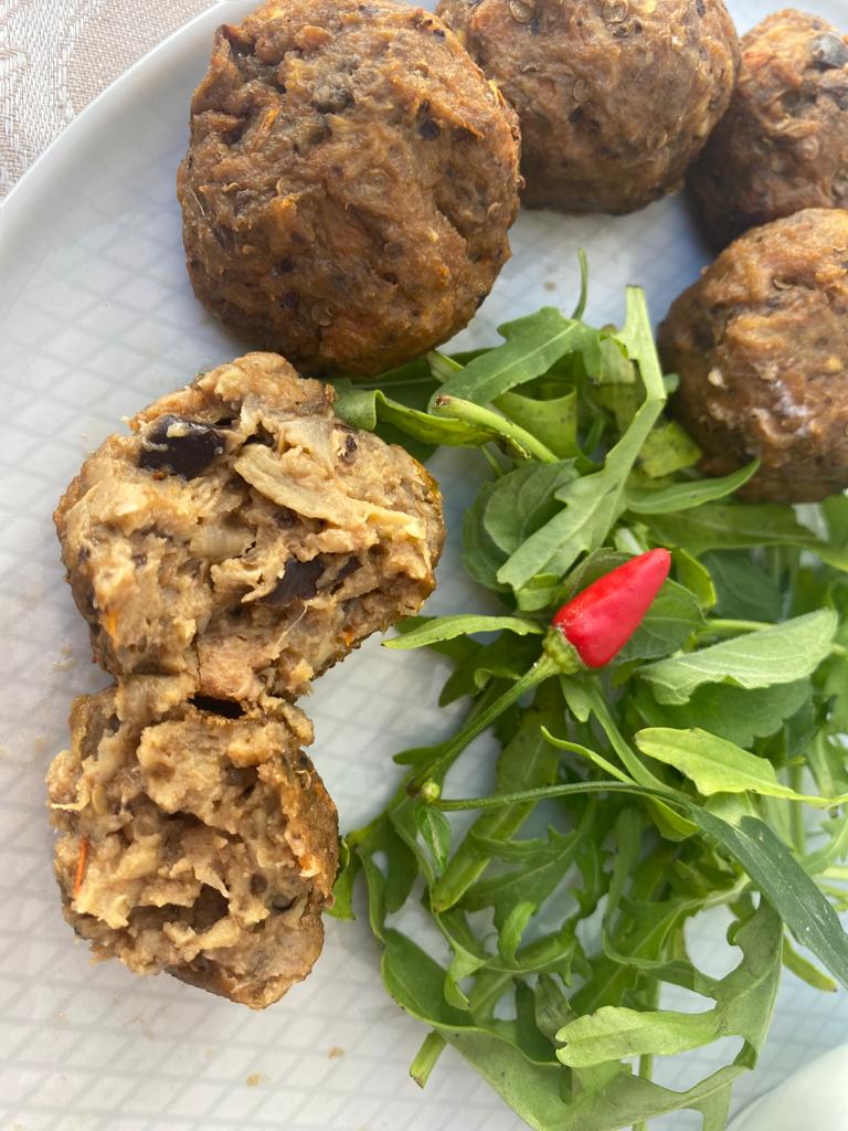 Estamos en plena temporada de la berenjena, (si hay todo el año) estas son de km0 de agricultor, mi premisa es consumir productos de temporada, ecológicos, A la hora de hacer tu compra elige siempre alimentos de temporada son más económicos. Por eso hoy he hecho estas s albóndigas de berenjena acompañadas con ketchup preparado con thermomix, sin azúcar que lo sustituyo por dátil, orejones o pasas y salsa de yogur.