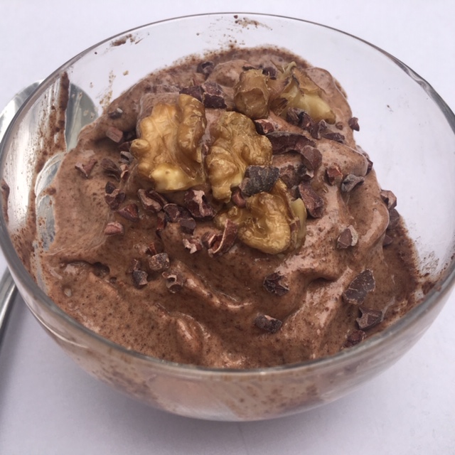 Sirve inmediatamente con unos trocitos de nueces y nibs de cacao natural.