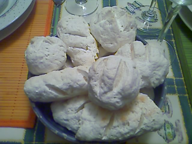 4. Se tapa la thermomix con una toalla o trapo durante 1 hora o 1 hora y media aproximadamente. Cuando transcurra un rato precalentamos el horno a 225º. 5. Sacamos la masa y con las manos enharinadas sobre el mármol le sacamos el aire, le damos la forma que queramos. En este caso yo he hecho algunos bollitos redondos y otros alargados. 6. Metemos al horno durante 20 minutos más o menos, depende del horno.