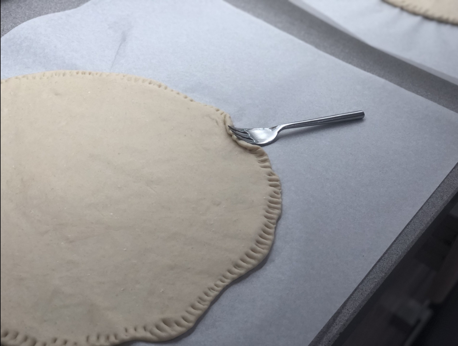- Divide la masa en dos bolas de dale forma redonda de un diámetro de unos 24-25 cm y del grosor de 1 cm. Deja doblar el volumen.
