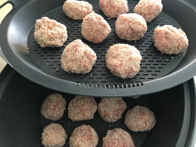 Encima colocamos el varoma con las albóndigas dentro. Cuando termine, ponemos en un bol el tomate junto con las albóndigas y las servimos con unos espaguetis o con arroz blanco o ensalada.