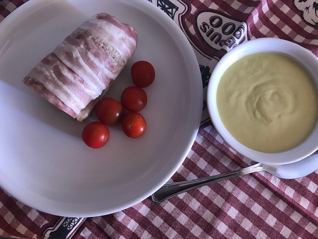 MENÚ COMPLETO: CREMA DE CALABACÁN Y ROLLITO DE CARNE RELLENO