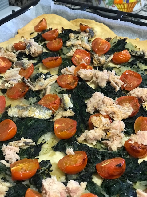 COCA DE ESPINACAS CON SARDINAS Y ATÚN THERMOMIX