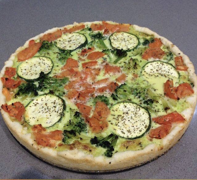 QUICHE DE TOMATE, BRÓCOLI, CALABACÁN Y ATÚN
