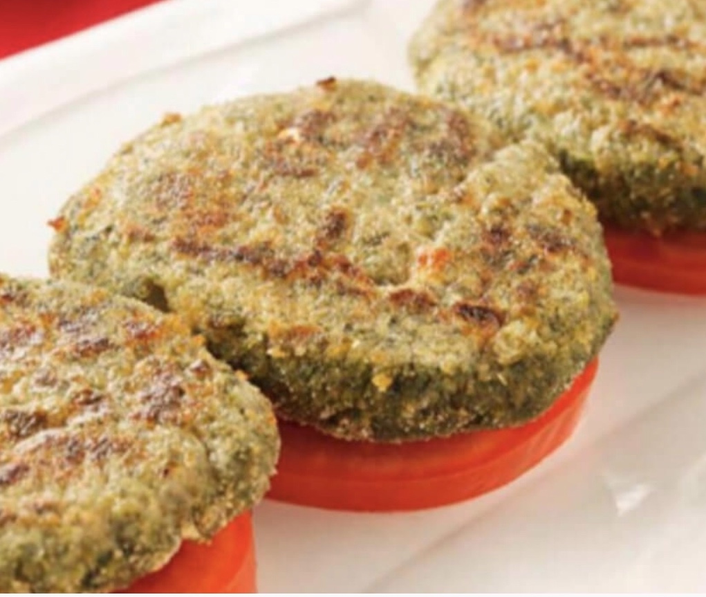 - Con las manos untadas un poquito con aceite formar las hamburguesas. Pasarlas por el pan rallado y colocarlas en una bandeja de horno forrada con papel de hornear.