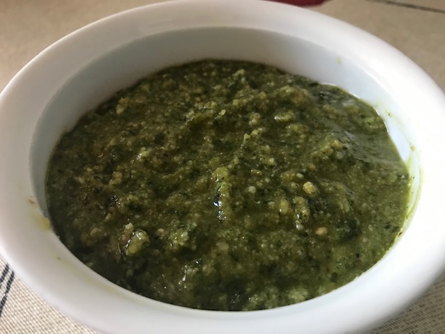 - Añadir el ajo, las nueces, la albahaca, el aceite, la sal y triturar 20 seg. vel. 8.