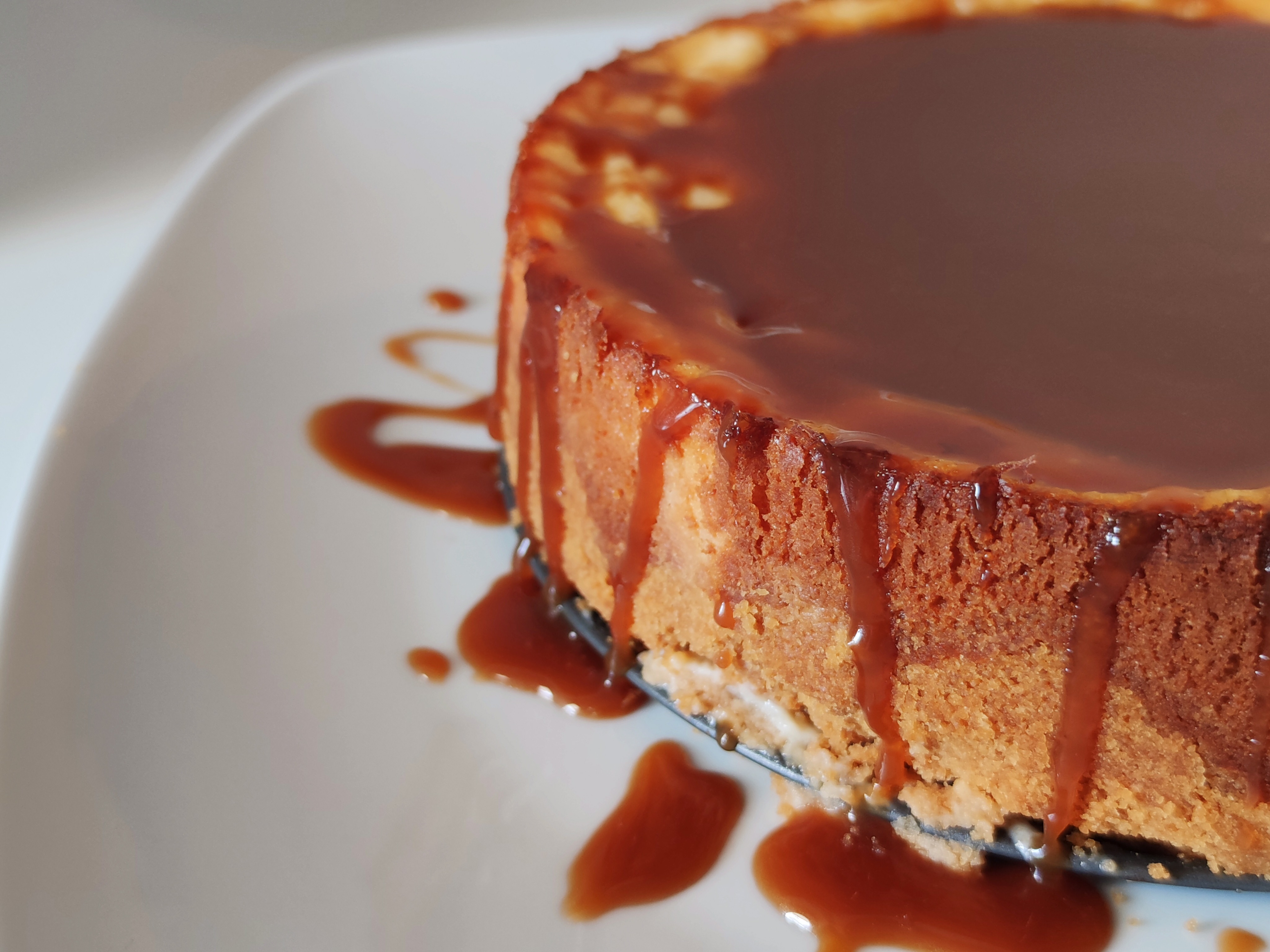 Hoy traigo una receta que me ha encantado. Es una tarta de queso con base de galleta y mantequilla molida y cubierta por una salsa espectacular que nos recuerda a los caramelos Werther’s Original ,pero con un toque salado que sin apenas notarse lo hace diferente y en contraste con la suavidad de la tarta combina perfectamente.