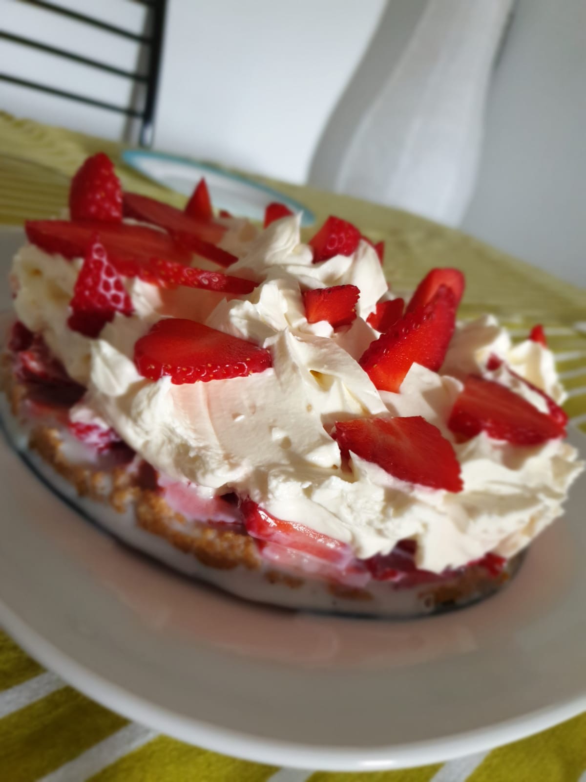 Esta receta la he preparado hoy ,está especial y se la dedico a mi hijo Miguel que desde siempre es casi la única que le gusta “con fresa y nata”.