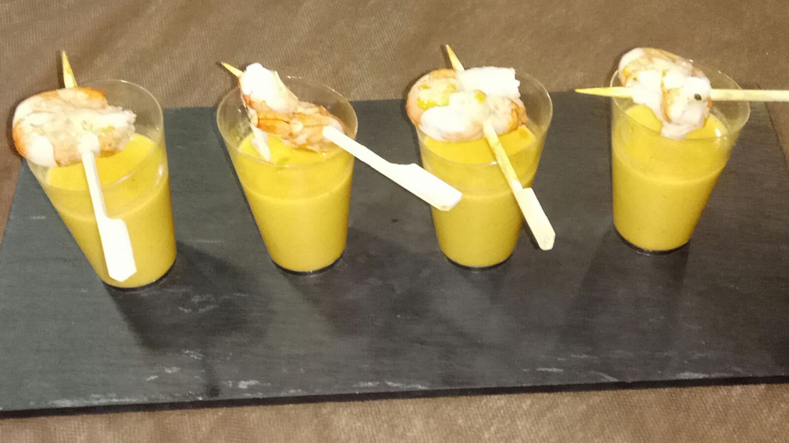 Prepara de forma muy fácil con tu Thermomix un fumet de gambón y tendrás la base para este rico y original chupito. Resulta una aperitivo o entrada perfecto para tus menús navideños o para un acontecimiento especial.