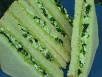 - Unta 6 rebanadas de pan con la preparación del queso, reparte por encima las rodajas de pepino y cubre con 6 rebanadas.