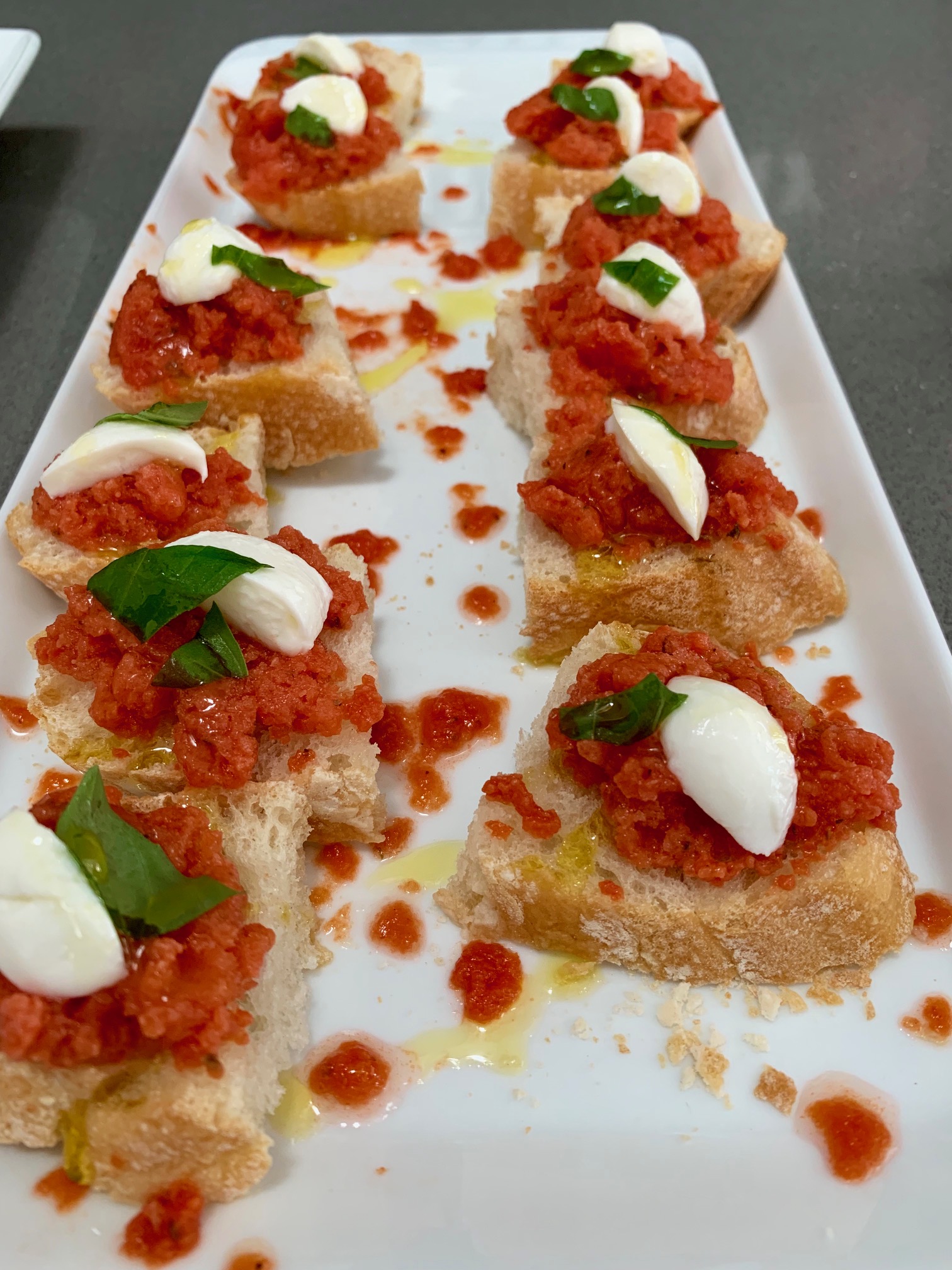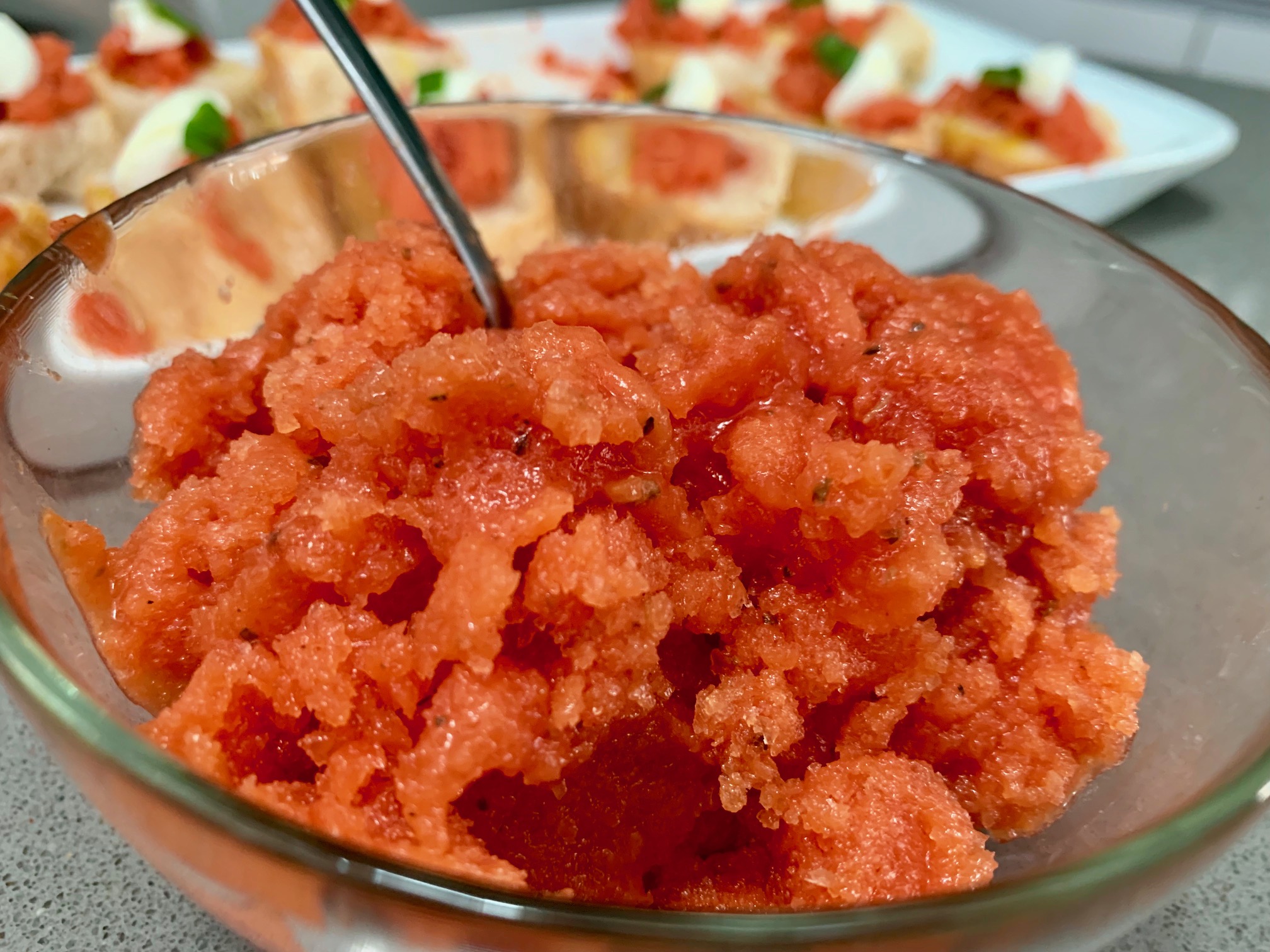 Tostas caprese con granizado de tomate con Thermomix
