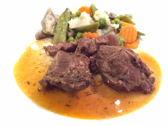 Carrillada al tomillo con menestra de verduras con Thermomix