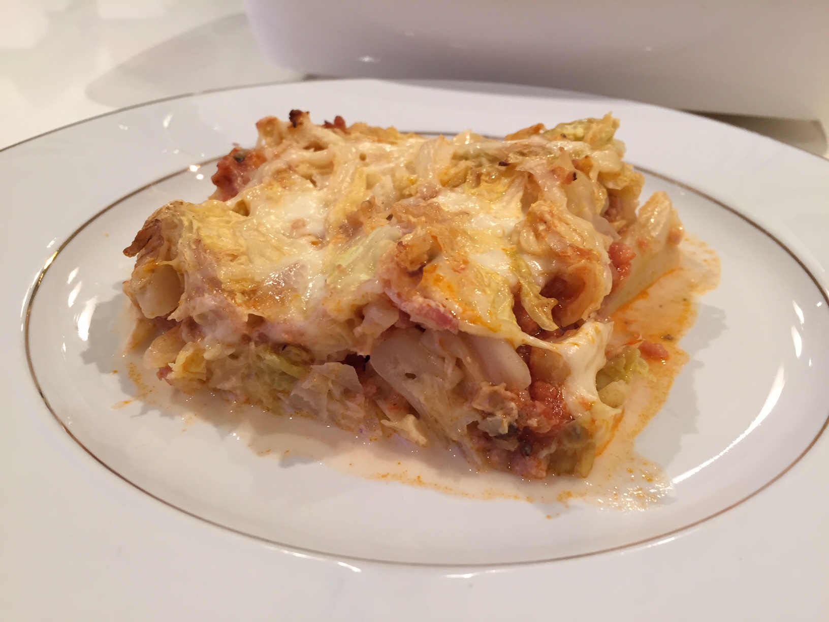 El repollo es la variedad de col más utilizada en Europa central, siendo Alemania uno de los principales países productores. En esta receta el repollo es uno de sus ingredientes convirtiendo esta receta en una especie de lasaña vegetal y complementada con las proteínas de la carne, bacon y lácteos. Receta completa llena de nutrientes y deliciosa. No dejes de probarla, a los niños también les va a encantar porque parece una lasaña.