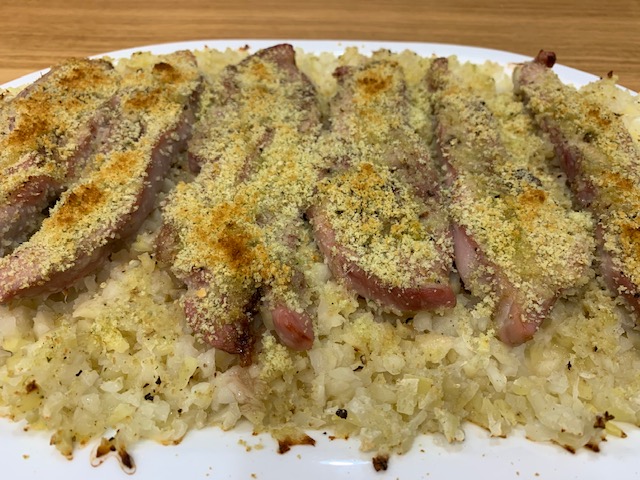 Hacemos una base de 300-500 gr de patata que troceamos 6-10 seg vel 4,5. en una bandeja de horno, salpimentamos bien y regamos un un poco de aceite. Ponemos sobre ella las chuletas con un poco de pimienta y sal. Cubrimos con el pan rallado con ajo y perejil preparado, regamos con un chorrito de aceite y horneamos 20 min a 200º.