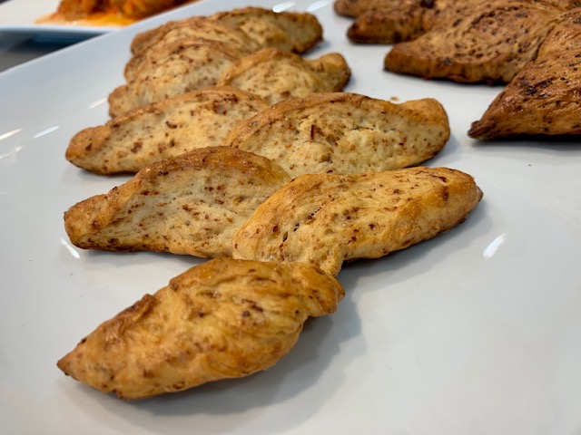 - Quitar la mariposa, sacar el pollo en una fuente y salsear con parte de la salsa. Reservar.