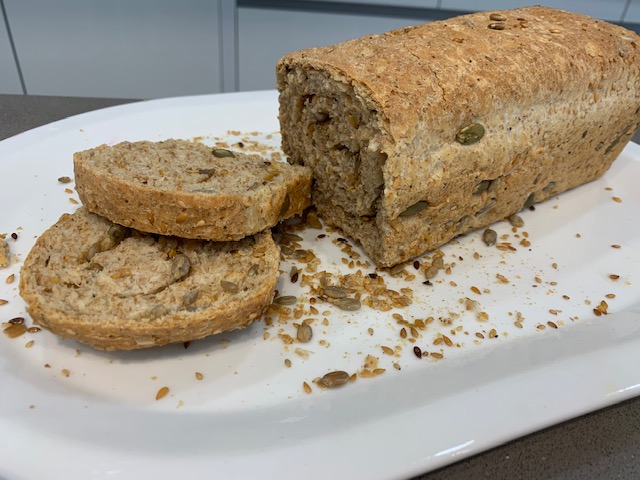 - Mezcle en un bol las semillas de lino, las semillas de sésamo, las pipas de calabaza y las pipas de girasol y reserve.
