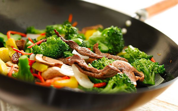 2. Saltearlos rápidamente a fuego fuerte, empezando por los ingredientes que tardan más en cocerse.