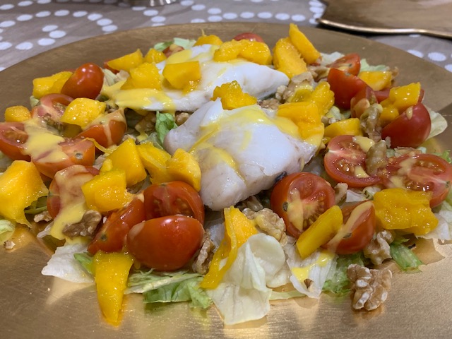 BACALAO CON ENSALADA Y VINAGRETA DE MANGO (VACIO)