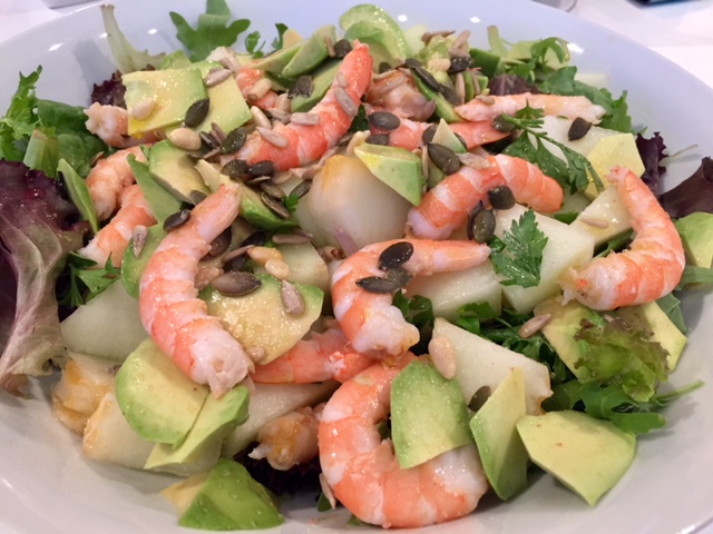 Ensalada verde con melón, aguacate y cigalas con Thermomix