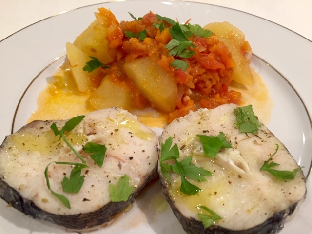 Esta receta del libro básico de Tm5 que viene con vuestra Thermomix es muy fácil de hacer y está muy buena. La puedes hacer con cualquier tipo de pescado y os enseñará a sacarle todo el partido a vuestro Varoma. Los pescados al Vapor quedan jugosísimos y la patata aunque la tomes al día siguiente no está dura. Pruébala y verás como te gusta.