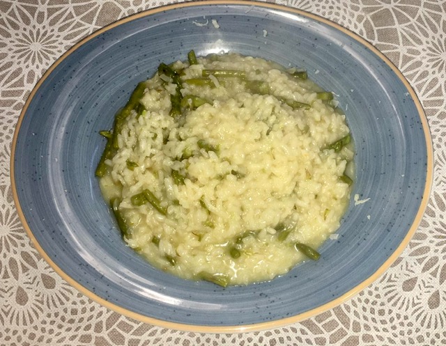 - Agregue el agua, los espárragos y la sal y programe 18 min/100ºC/Giro inverso/vel 1. Cuando termine el tiempo del horno, saque los cuatro filetes del rodaballo, riéguelos con la salsa de la bandeja y sirva con el risotto.