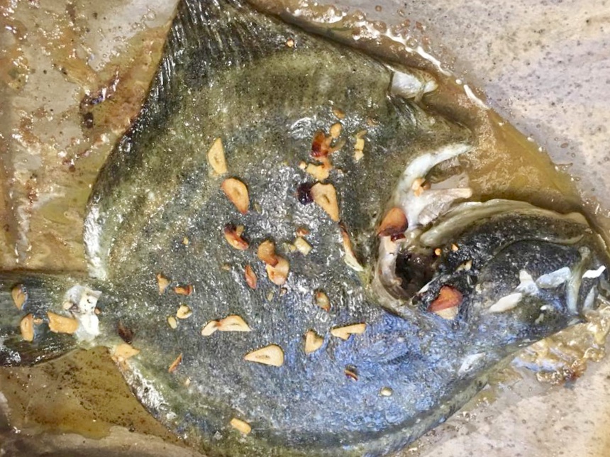 - Precaliente el horno 22ºC. Coloque el rodaballo en una bandeja de horno forrada con papel de hornear y reserve.