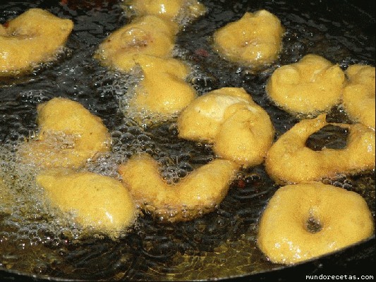 8. Una vez esté la masa en su punto, freír en abundante aceite caliente.