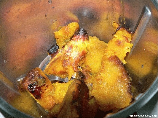 - 750 gr. de calabaza cocida en el varoma, a fuego lento con un poquito de agua o asada en el horno. Yo la he asado en el horno.