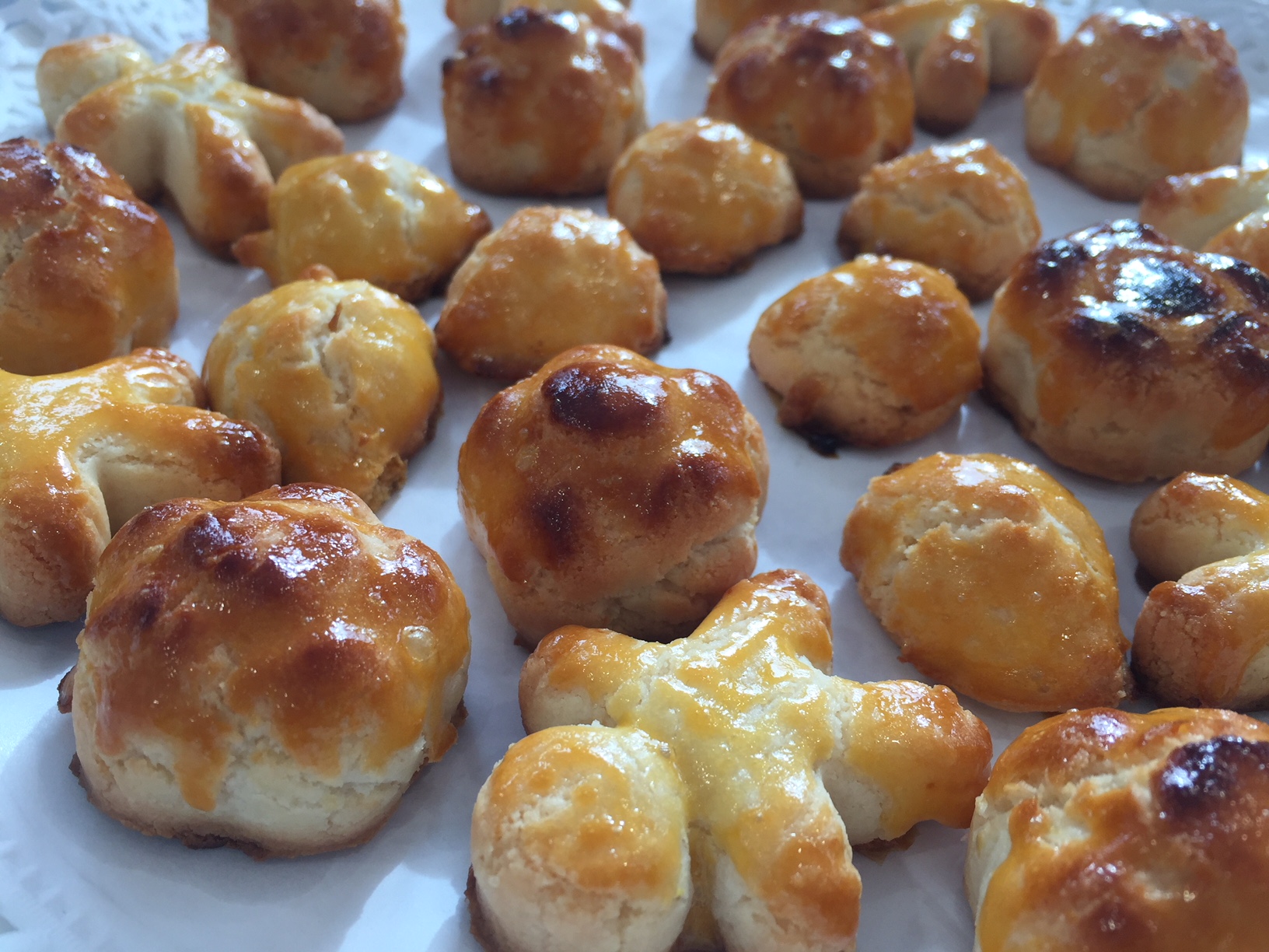 Se puede hacer un glaseado de azucar y claras y bañarlas (glasa blanca del libro). Esta endurece con rapidez y para hacerla fluida de nuevo meter unos segundos en el microondas.