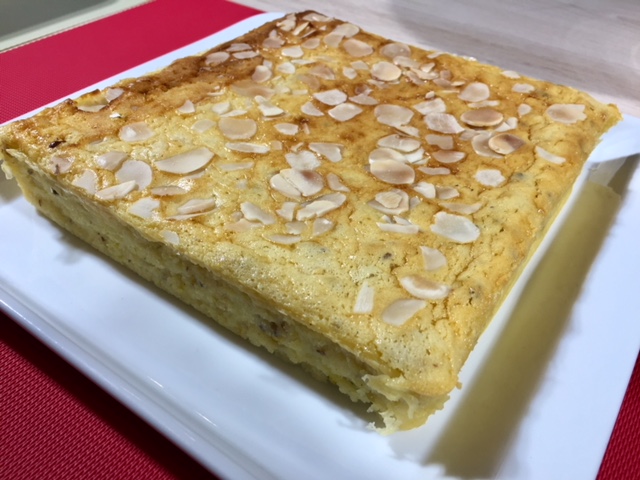 - Hornee durante 40 minutos (180ºC) Retire del horno y deje templar antes de desmoldar y cortar en cuadrados y servir.