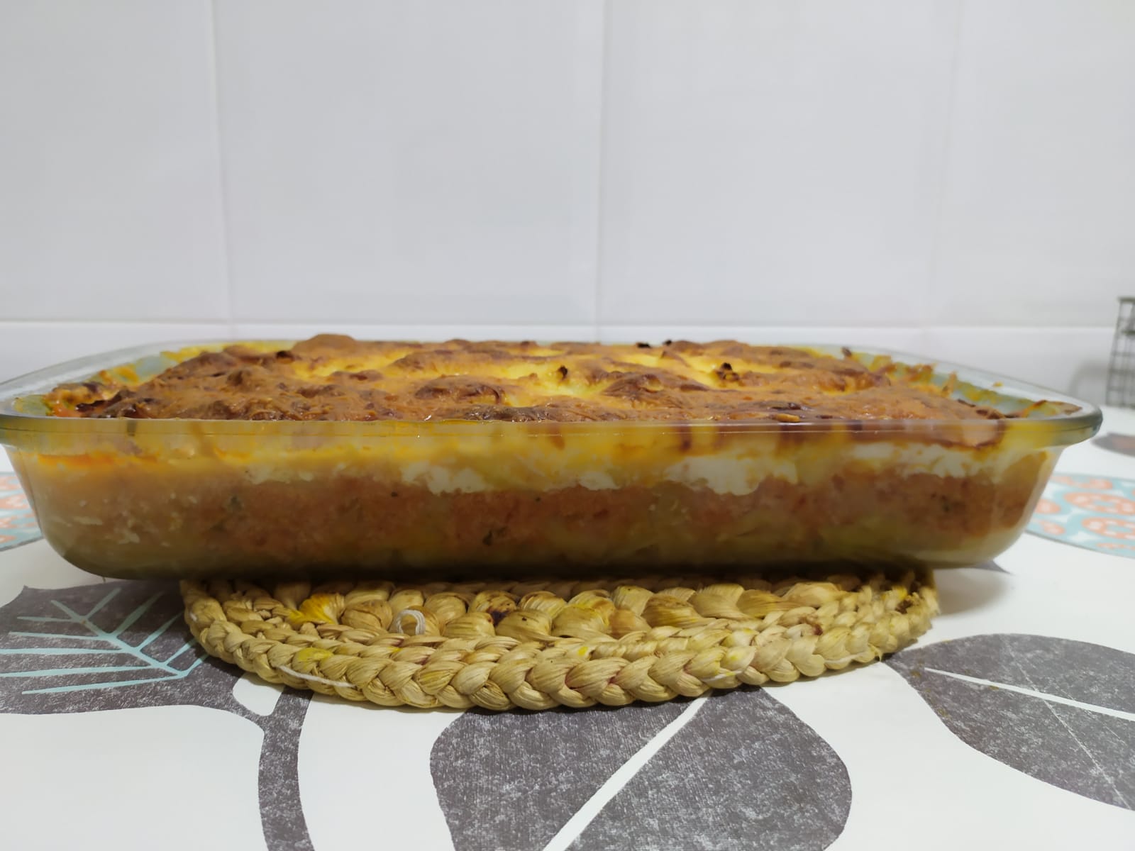 En una fuente de horno, coloque la mitad del repollo y vierta encima la salsa con la carne picada del vaso. Distribuya por la superficie la mozzarella y cubra con el repollo restante. Vierta por encima la nata líquida y espolvoree con el queso rallado.