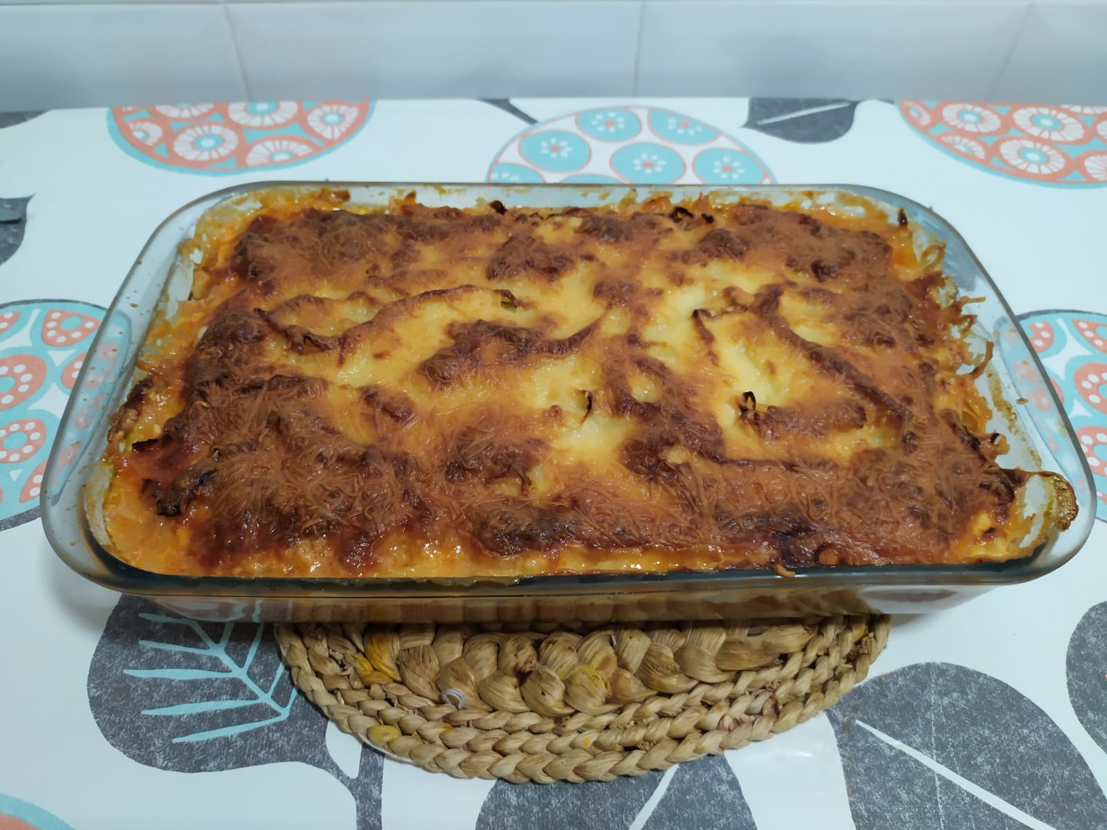 Hornee durante 10-15 minutos (200°C), hasta que el queso rallado se funda. Sirva inmediatamente.