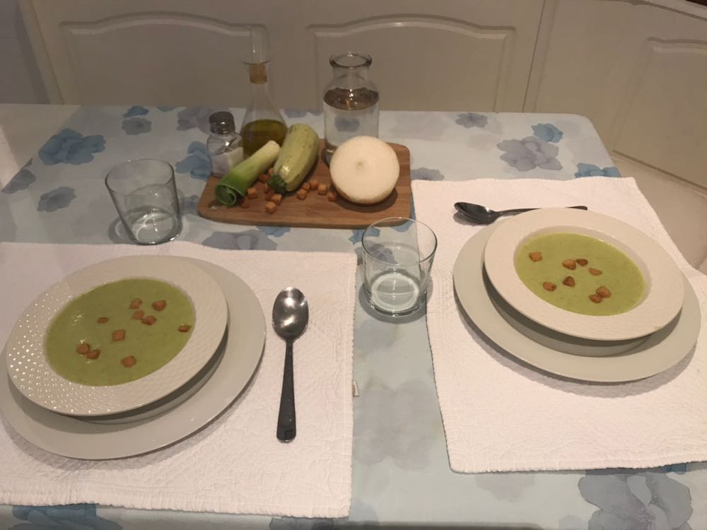 - Lava, seca y trocea los calabacines en trozos grandes. Viértelos dentro del vaso. Trocea en 4 partes la cebolla y añádelo junto con el aceite. Sofríe 10 minutos, 120º, velocidad 2, sin cubilete.