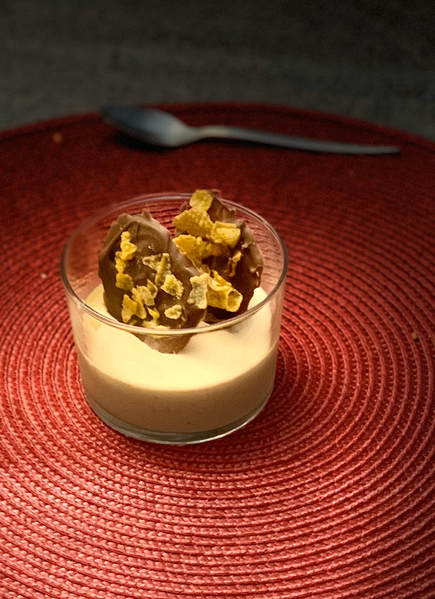 MOUSSE DE TURRON CON GALLETA CRUJIENTE DE CEREALES Y CHOCOLATE