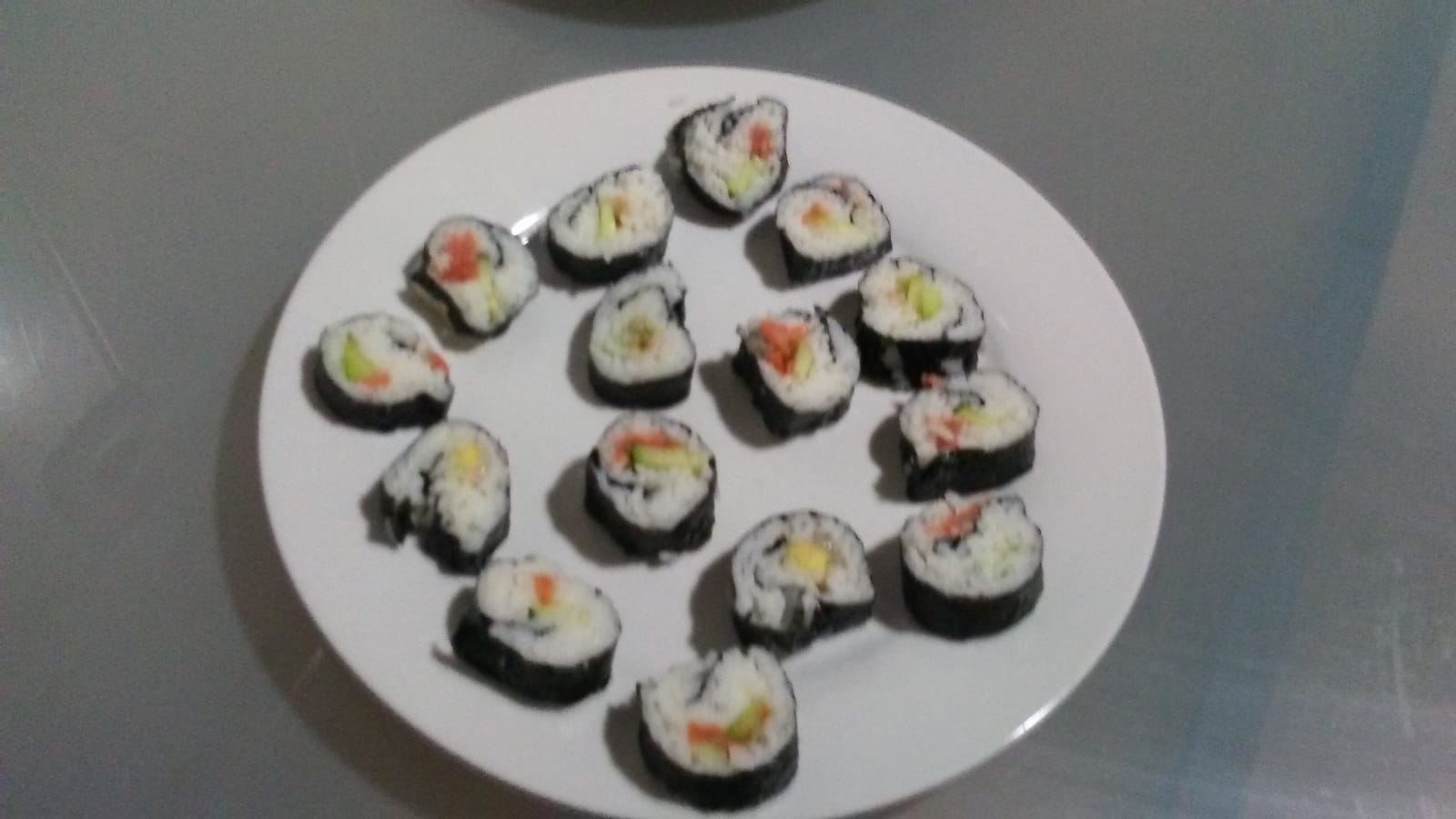 Si os gusta el sushi,vale la pena que lo probeis hacer vosotros mismos,cocinando a vapor el arroz ,solo nos fata el tatami para deleitarnos con estos sushis de luxe.Ingredientes:4-5 láminas de alga nori50 gramos de lomo de atún50 gramos de lomo de salmónMedio aguacateMedia rama de apioMedio pepinoPreparar aliño de arroz y arroz para sushi.Preparación:- Sobre la esterilla de bambú (aunque sirve papel de hornear) ponga una lámina de alga nori, con la parte más rugosa hacia arriba-Cubrimos las láminas con el arroz, dejando por arriba un buen trozo libre, para poder colocar el resto del relleno y enrollar a continuación. Les damos la vuelta las hojas de Nori, con cuidado de que no se caiga el arroz, y en una colocamos arriba un poco de atún, con un poco de pepino y aguacate al lado, y en el otro, un poco de salmón y apio al lado, todo cortado en tiras finas. Si no te gusta el salmón puedes elegir otro tipo de pescado, pero a ser posible que tenga un sabor similar. El salmón es uno de los pescados más conocidos y consumidos en gran parte del mundo, además de su extraordinario sabor es un pescado bajo en grasas con un gran contenido en proteínas y ácidos omega-3. Envolvemos las esterillas, procurando que no sobresalga el relleno por los lados. Una vez envueltas, las quitamos y ya tenemos los rollitos preparados para cortar.- Corte el rollo en cuatro o cinco porciones con un cuchillo humedecido- Repita el proceso con todas las láminas de alga nori