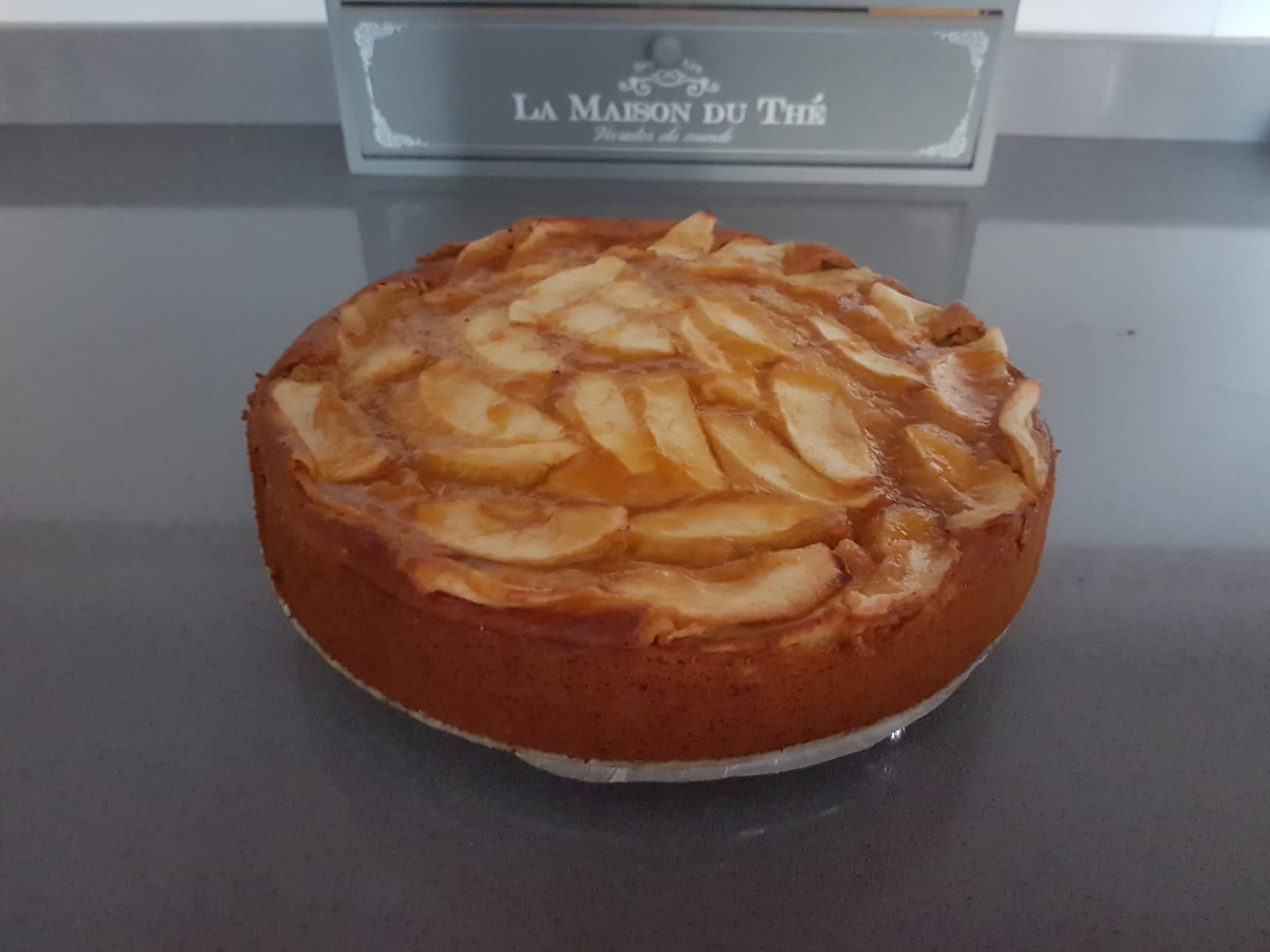 >Enmantequillar y enharinar un molde apropiado para hacer este tipo de tartas (el mío tiene 27 cm de diámetro). >Depositar en él la masa y cubrir con gajos de manzanas finitos. Hornear a 180º unos 35-40 minutos.